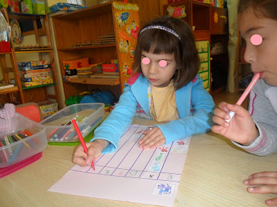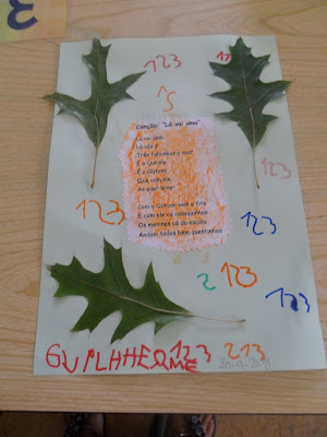 Continuamos a aprender matemática com a ajuda do outono. Contamos as nossas amigas folhinhas e tínhamos que descobrir qual o número. Depois fomos à nossa série numérica e vimos onde estava o número que dissemos. É muito divertido brincar à matemática com o outono!
